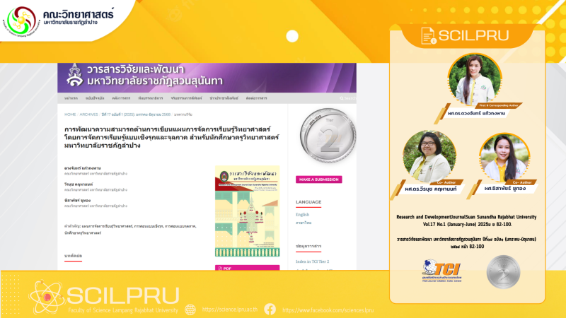 งานวิจัยของคณาจารย์วิทยาศาสตร์ ได้รับการตีพิมพ์วารสาร TCI2