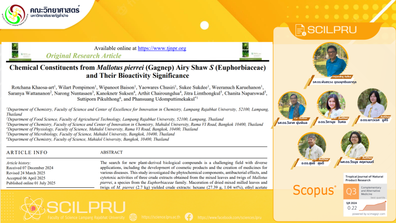 คณะวิทยาศาสตร์ขอแสดงความยินดีกับคณาจารย์ที่ผลงานวิจัยได้รับการตีพิมพ์เผยแพร่ในวารสารฐานข้อมูล Scopus Q3