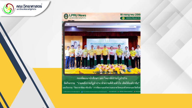 เมื่อวันที่ 10 กันยายน 2568 นักศึกษาสาขาวิชาเคมี ชั้นปีที่ 3 คณะวิทยาศาสตร์ มหาวิทยาลัยราชภัฏลำปาง เข้าร่วมกิจกรรมนำเสนอผลงานสื่อนวัตกรรมทางเคมีศึกษาใน "โครงการพัฒนานักศึกษาด้านการนำเสนอผลงานสื่อนวัตกรรมทางเคมี"