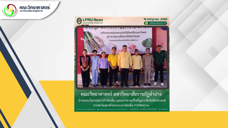 คณะวิทยาศาสตร์ มร.ลป. นำเสนอนวัตกรรมการกำจัดกลิ่น และแนวทางแก้ไขปัญหากลิ่นไม่พึงประสงค์จากฟาร์มสุกรด้วยระบบบำบัดกลิ่น FOPBIACA