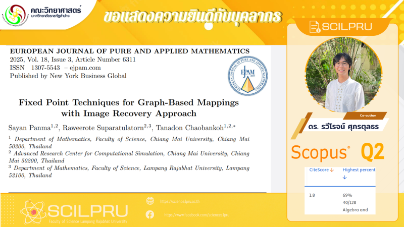 งานวิจัยของคณาจารย์สาขาวิชาคณิตศาสตร์ ได้รับการตีพิมพ์วารสาร Q1