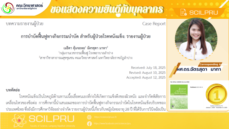 คณะวิทยาศาสตร์ขอแสดงความยินดีกับคณาจารย์ที่ผลงานวิจัยได้รับการตีพิมพ์เผยแพร่ในวารสารฐานข้อมูล Scopus Q2