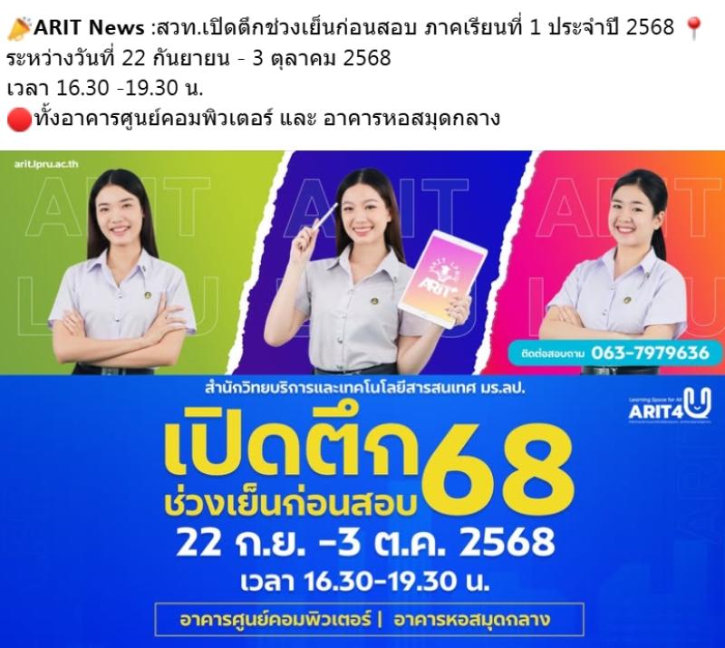 อาคารห้องสมุดมหาวิยาลัยและอาคารคอมพิวเตอร์เปิดบริการช่วงเย็น 22 กันยายน - 3 ตุลาคม 2568 เวลา 16.30-19.30 น.